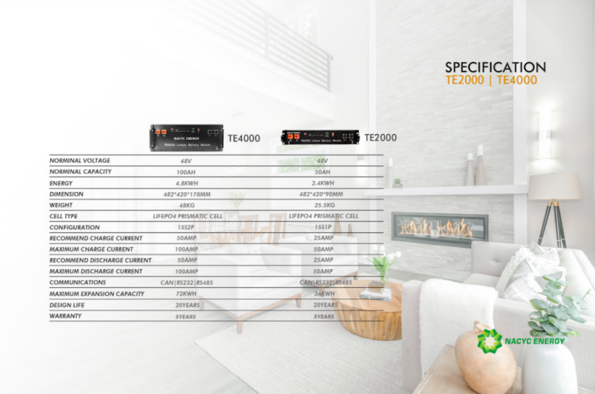 48V Lithium Ion Battery – Rack-mounted 100Ah, 48V, 4.8kWh