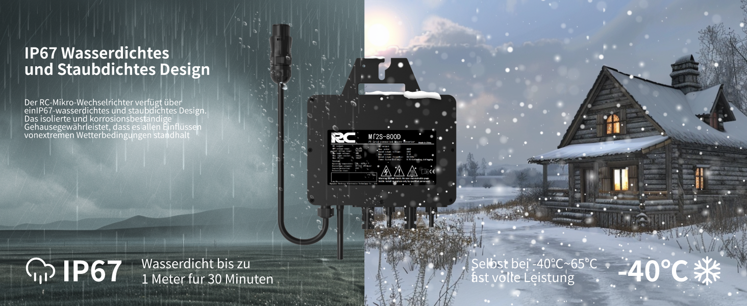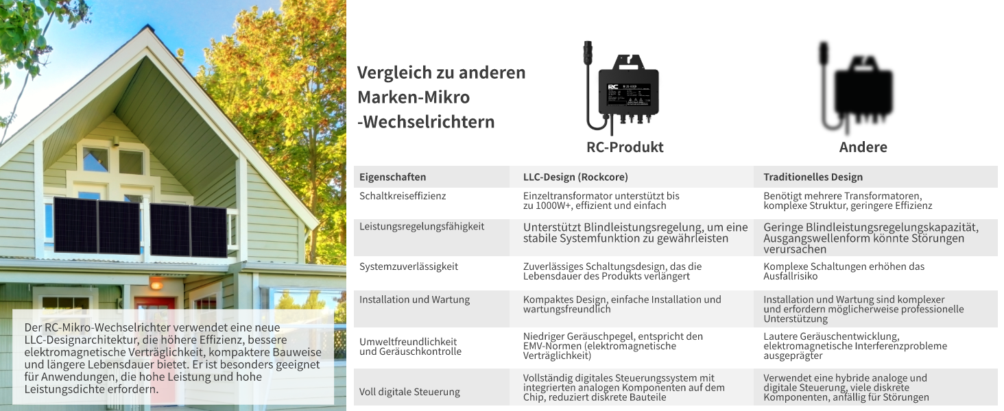 - 1x Rockcore Mikro-Wechselrichter MI2S-800D inkl. WLAN-Modul für Monitoring über App